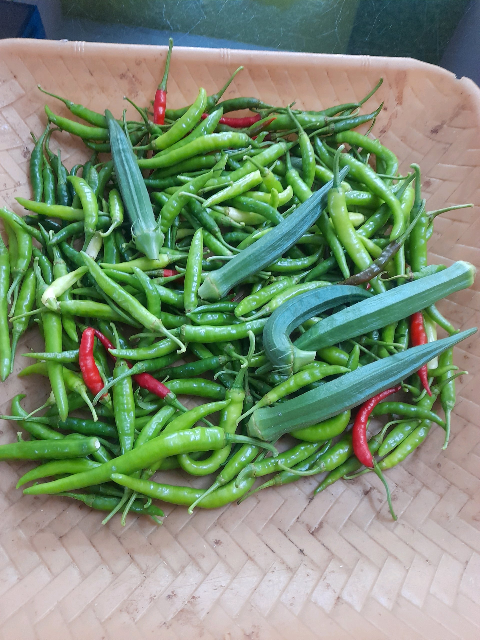 Fresh vegetables from home. Cultivated freshly without any pesticides. Tomato, brinjal, chilli, Ladies finger